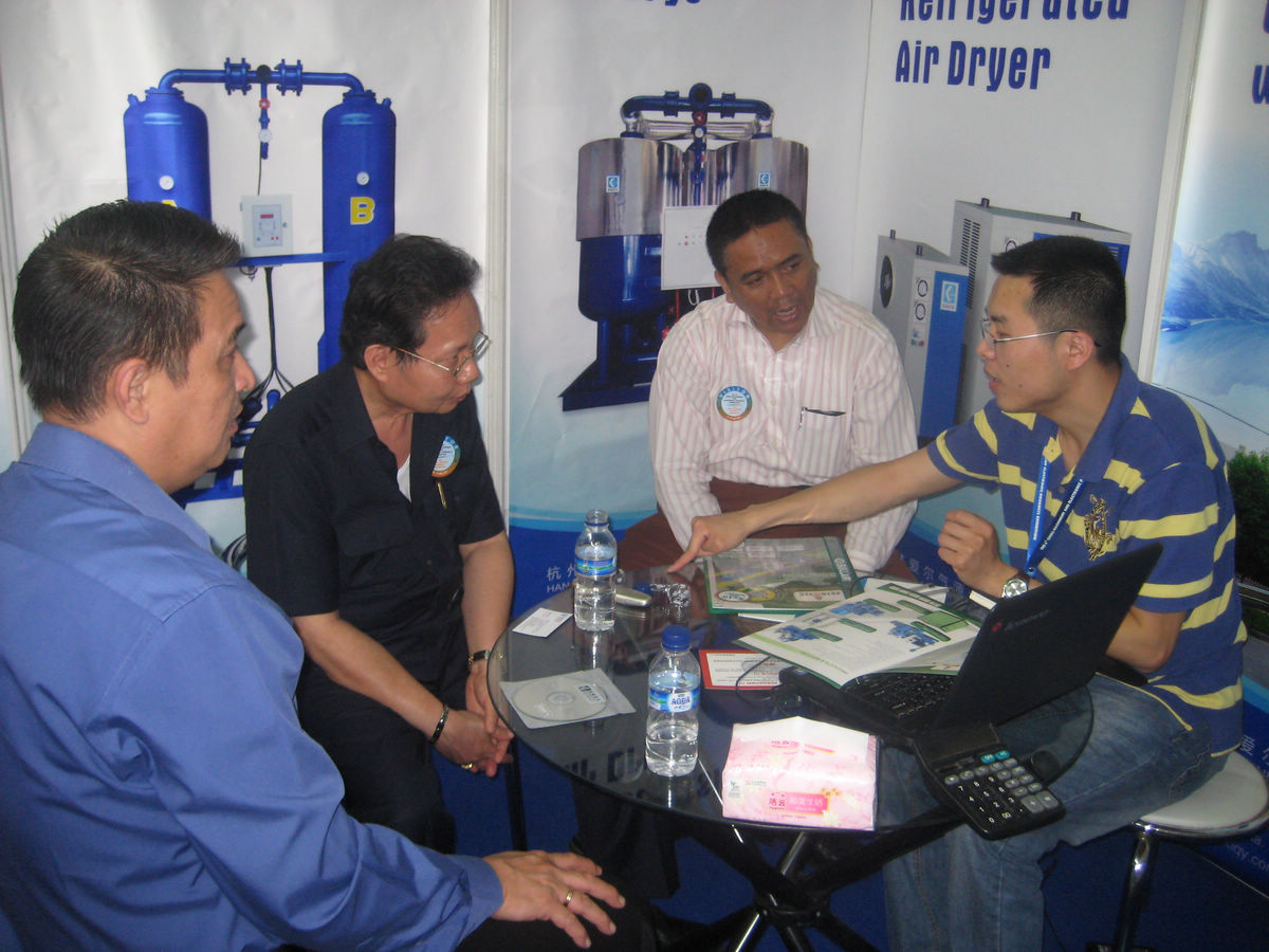 作為唯一一家壓縮空氣凈化設備的參展商,科林愛爾展臺前絡繹不絕。此次主要展出了壓縮空氣過濾器、吸附式干燥機和冷凍式干燥機。